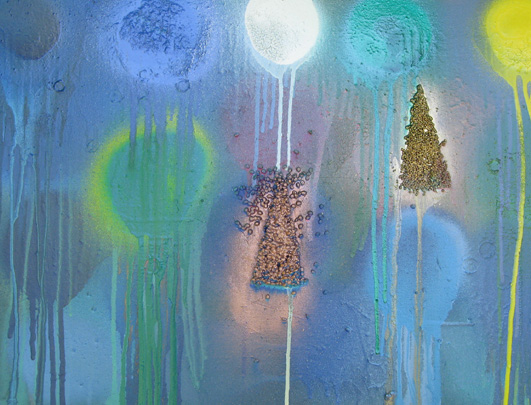 Oil Based Aerosol and Found Objects on Canvas